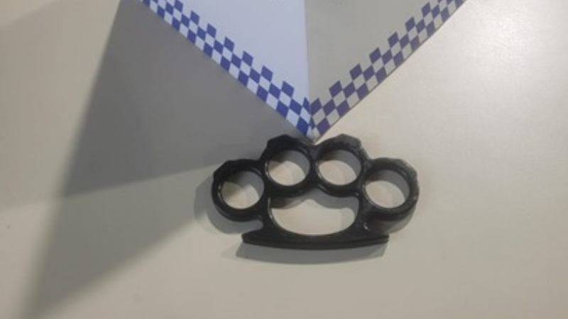 Na manhã desta quarta-feira (06), uma mulher de 46 anos foi flagrada com um soco inglês ao tentar entrar no Fórum de Miracema. O detector de metais indicou uma irregularidade em sua bolsa, o que levou um funcionário da empresa de segurança a fazer a verificação e localizar o objeto (foto).