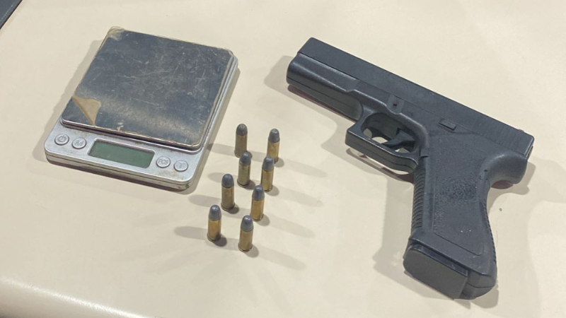 Durante a ação, os agentes conversaram com o morador, que foi informado da determinação judicial. No imóvel, os policiais encontraram um simulacro de pistola, uma balança de precisão e oito munições de calibre .32.