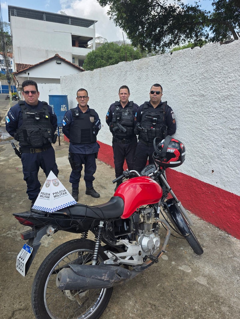 Ao verificar a procedência do veículo, os policiais constataram que a moto era produto de roubo. Diante da situação, o menor e a motocicleta foram encaminhados para a 143ª Delegacia de Polícia, em Itaperuna, para as demais providências legais.