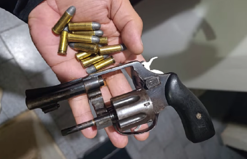 Uma guarnição da PM foi até a residência do denunciado, que foi informado sobre a acusação. O homem entregou voluntariamente um revólver calibre .32, com 11 cápsulas intactas.
