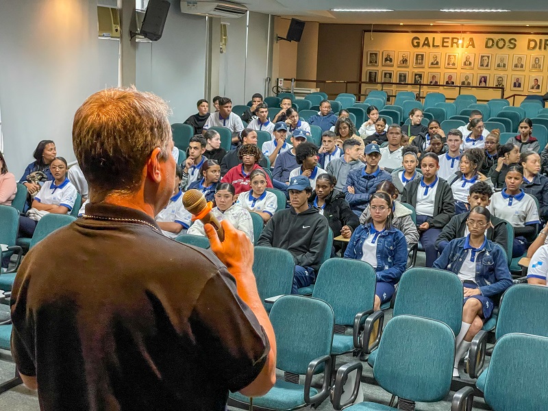 O grupo também participou do tradicional “Papo de Responsa”, programa da Polícia Civil que há mais de duas décadas leva diálogo e reflexão aos jovens sobre temas como drogas, violência e responsabilidade social.