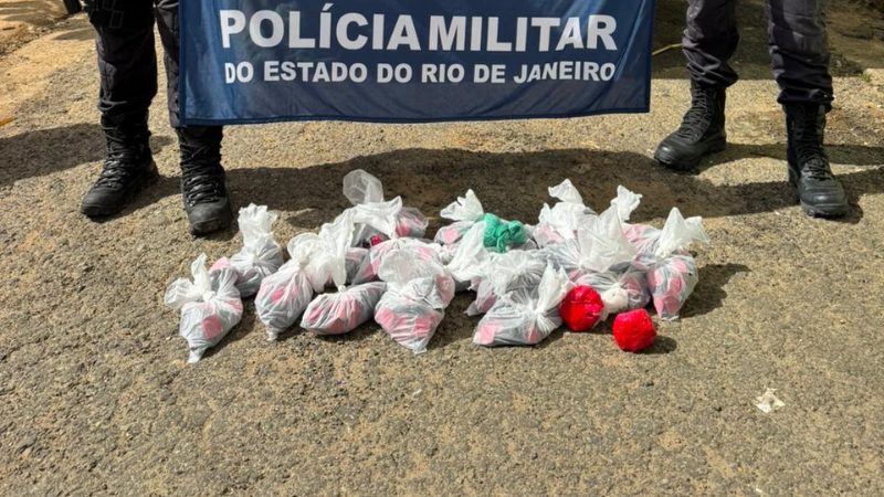 Policiais militares apreenderam uma grande quantidade de entorpecentes e uma motocicleta durante uma ação de combate ao tráfico de drogas na Rua Pastor Joadir Pires Gonçalves, Morro do Castelo, em Itaperuna. A operação foi realizada na tarde desta quinta-feira (23), por volta das 14h.