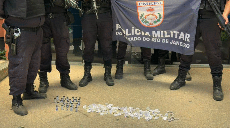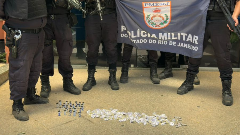 Durante as buscas, nenhum suspeito foi localizado nas proximidades. Os militares encontraram e apreenderam 12 buchas de maconha, 27 frascos de “cheirinho da loló” e 127 pinos de cocaína. O material foi encaminhado para registro da ocorrência na 136ª DP.