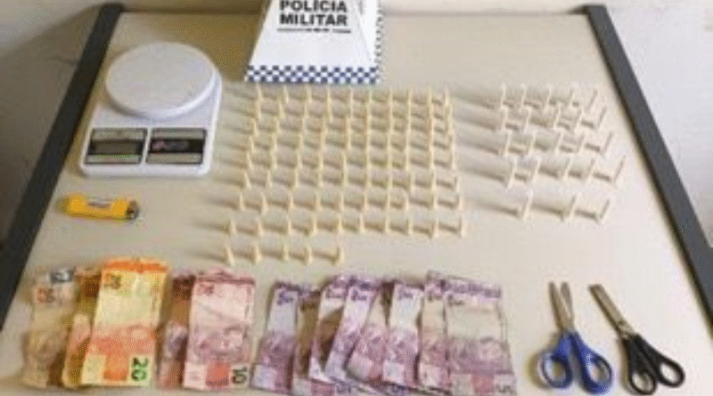 Nas proximidades do local da abordagem, os agentes localizaram 108 pinos de cocaína, totalizando 330 gramas, segundo laudo pericial, além de uma balança de precisão.