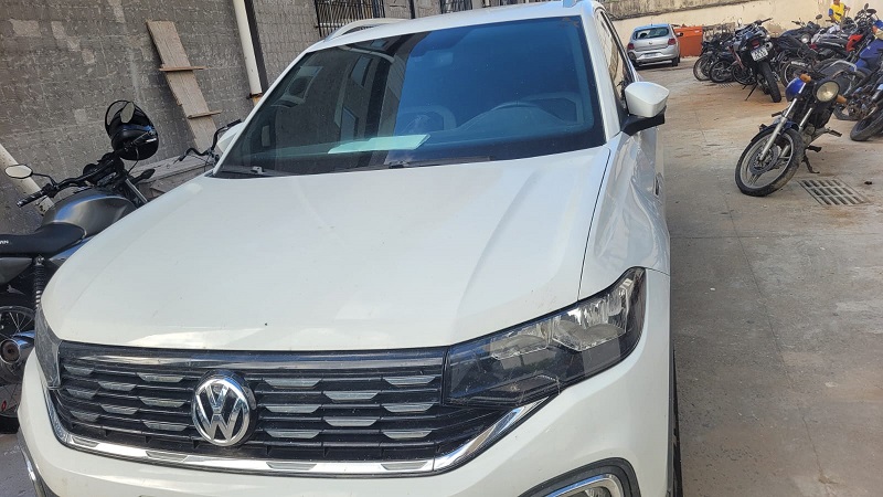 Um veículo Volkswagen T-Cross de cor branca foi apreendido pela Polícia Rodoviária Federal no km 34 da Rodovia BR-356, em Itaperuna, no início da tarde desta segunda-feira (22).