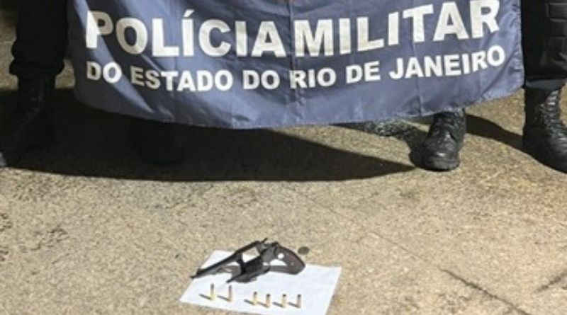 Policiais militares iniciaram diligências e localizaram os suspeitos no Centro de Aperibé, nas proximidades da Praça Francisco Blanc. Durante as buscas, foi apreendido um revólver calibre .32, além de duas munições intactas e quatro munições deflagradas.