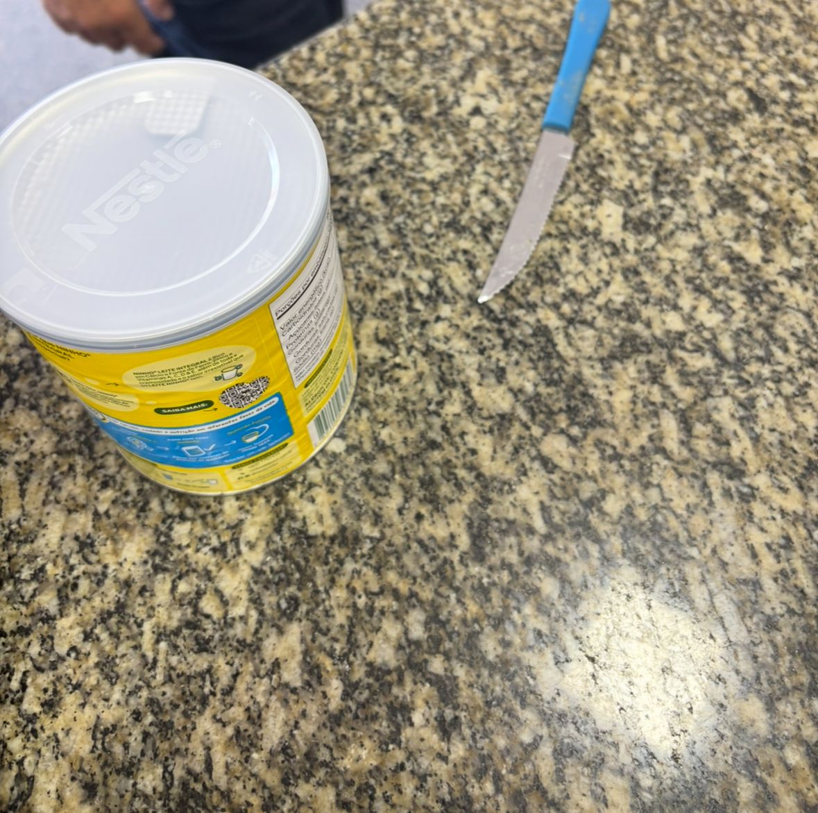 Na tarde desta quarta-feira (07), o suspeito causou confusão no estabelecimento, pegou uma lata de leite em pó (foto) e saiu sem efetuar o pagamento. Uma guarnição da Polícia Militar, que realizava patrulhamento nas proximidades, foi acionada e conseguiu deter o homem logo em seguida.