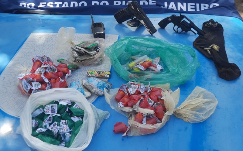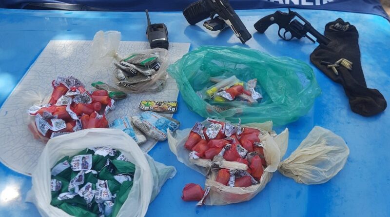Durante a ação, os policiais se depararam com o jovem portando uma pistola calibre 9mm. Na diligência, também foram apreendidos um revólver e material entorpecente.
