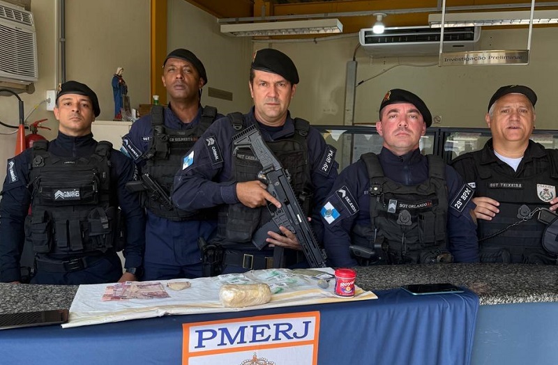 Em seguida, ele foi abordado e autorizou a realização de buscas no local. Os materiais descartados foram recuperados pelos agentes, sendo apreendidos um tablete de pasta base de cocaína, materiais utilizados para embalar drogas, aparelhos celulares e uma quantia em dinheiro.