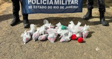 Já no interior da viatura, o jovem cuspiu sete invólucros plásticos contendo cocaína. Alguns invólucros estavam furados pois foram mastigados. O infrator chegou a receber atendimento no Posto de Urgência (PU) do município.